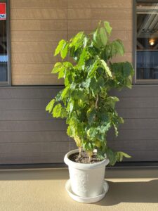 11月11日14時、甲府では気温22℃湿度61%晴れで風もなく快適な陽気です。この時期にしては気温が高く、まるで春かと錯覚しそうです。それでも太陽の位置は低く、射し込む日差しの柔らかさに秋を感じます。夜間は店内で過ごすコーヒーの子供たちのも日中は駐車場で長閑な日差しの中でまどろんでいます。水やりは3~4日おきに水性肥料を極薄に希釈して与えています。厳しい冬を前に体力を付ける大切な時期です。