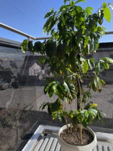 3月10日、朝は-5℃と厳しく冷え込みましたが風がなく穏やかな一日でした。暖冬だったこともあり、オイルヒーターなどの暖房を使用せずに冬を乗り切ることが出来ました。特に2月が異常な高温でコーヒーの成長にも影響がありました。中でもサビ病を再発したポットが心配です。今日は思い切ってベランダに出して春の日差しの下で日光浴をしました。紫外線の殺菌効果に期待します。2輪咲いた後の3輪目の花芽はまだ膨らみません。