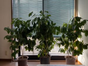 9月7日、朝晩は凌ぎやすくなりましたが日中は猛暑日で記録を更新中です。暑い話題ばかりですが、先日JAXAの衛星が観測した全国の県庁所在地の地表面温度が公表されました。それが何と甲府が65.7℃で断トツ第1位に、2位のさいたま市に10℃以上も差を付けて異常です。盆地特有の熱が滞留しやすい地形が原因の一つとされてます。私のコーヒー栽培は微小でも、1人1人が植物を育てたら地球温暖化対策の一助になると信じています。