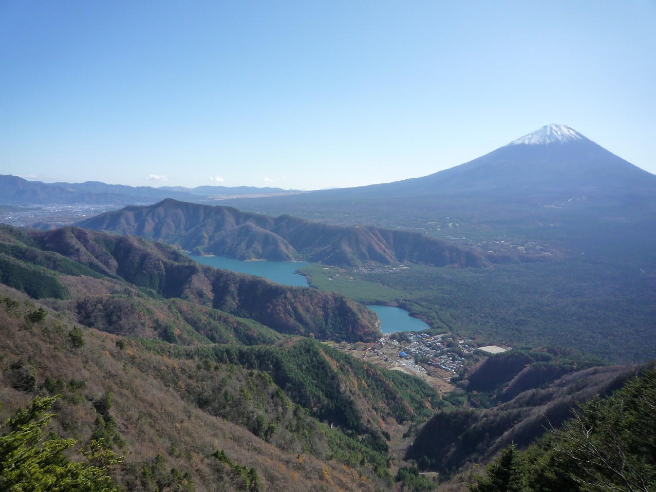 写真は、王岳手前の岩場から真下に見る根場地区、残された住民は被災地からすぐ南にある青木ヶ原の溶岩台地に移転し民宿村として復興を遂げた。