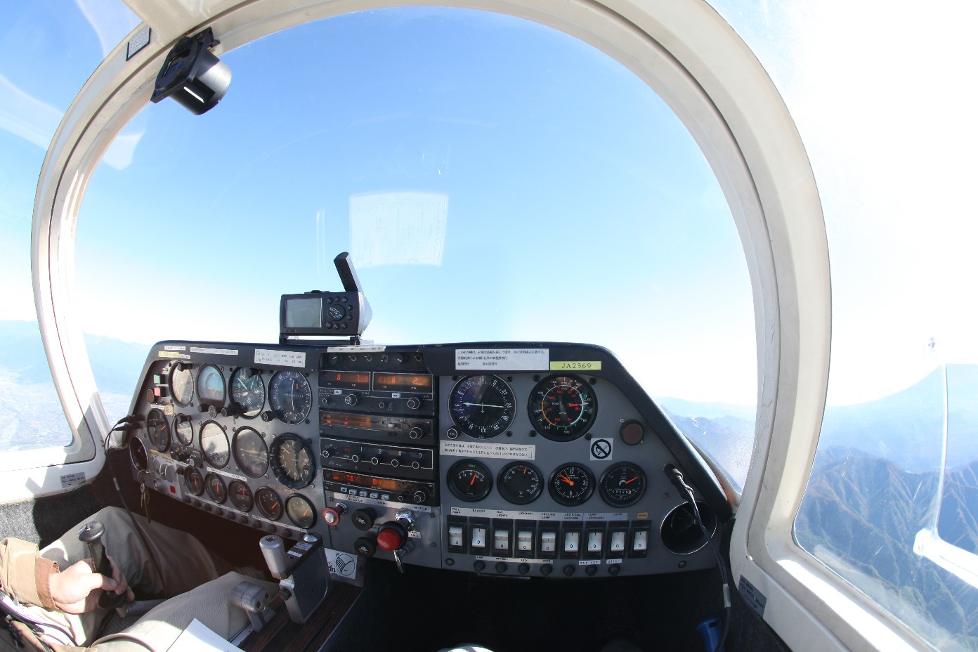 魚眼レンズで撮ると狭い操縦席が水族館のように(写真)いつの間にレンズ交換したんだろう?さすがプロだな!これからのフライトが楽しみだ!
