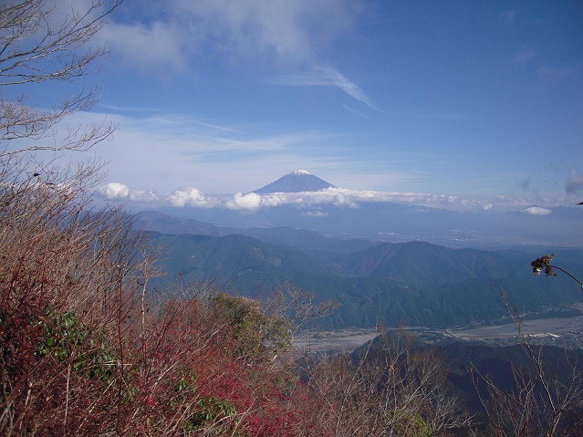 富士川沿いに静岡に延びる国道52号線を車で2時間、山梨県最南端の南部町の山を初めて訪ねた。目指す篠井山(1394m)は富士川の西岸にぐんと聳え南北に長い山体は大きく上空には小春日和の青空が広がっている。