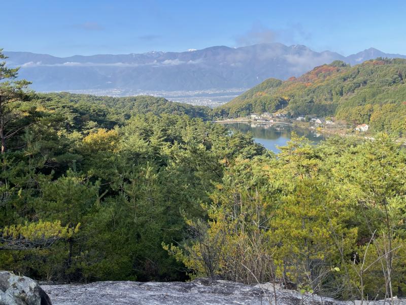 晴天確立が高い文化の日には山に登りたいと思い仕事は調整できたが、何かと用事が多い。最近の山行は軽いハイキング程度だけで体力の低下も気に掛かる。ラジオ体操を終え緑ヶ丘スポーツ公園に向かう。休日の朝は車が少なく10分で体育館の駐車場に着いた。色付き始めた木々の間を湯村山に向けスタートする。実は体が温まる前の、この湯村山への直登が意外とハードで息が切れる。楽に登れた前回のペース配分を意識し過ぎて湯村山17分、かなり遅い。法泉寺山35分、さらに遅い。ギアを上げたいが体が重い。久しぶりに汗が流れ落ちる。落ちた体力を気持ちでカバーして八王子山59分、何とか1時間を切って通過する。ここから白山まで走ったが、タイムを見て愕然とする。雪を乗せた白根三山は高い。 FT緑ヶ丘07:00~白 山08:05 1+05(1.06.02)