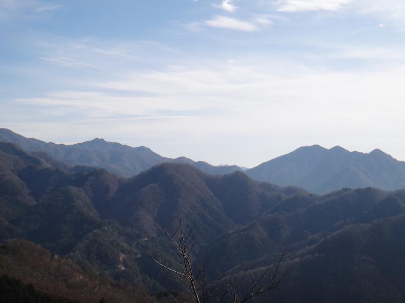 2週間ぶりに休みが取れたので、甲斐百山の開いたページに登ることにした。P118 甲州高尾山(1092m)健脚度☆ 困難度★★ 運よく低山、登山口は勝沼ICから5分と近い。それに冬には最適の南向きのコースが嬉しい。甲州高尾山は過去に大滝不動尊から棚横手に登った時に足を延ばした。だが山頂と思われるピークに標柱などなく、その先は下りだったから釈然としないまま帰った。本当の頂上は何処だったのか、その疑問も解きたい。同行はクラブのS氏と、懲りずに付き合ってくれるY君のベストメンバーが揃った。大善寺からスタートする尾根は急坂で早くも汗がにじむ。40分程で主脈に上がると快適な稜線歩きになる。風もなく日差しは暖かいから上着はいらない。798m点から小さなアップダウンを経て930m点に到着する。ここから緩やかに下った後、本日最大の急登になるが時間にして僅か30分だから問題ない。残念なのはこの後、アスファルト舗装の林道が尾根を横切っていることで、興ざめする。直ぐに最初のピーク剣が峰(1092m)、次に高尾山(1106m)でそれぞれ立派な標柱が建つ。最後が最高点(1120m)で標柱は無いが今日も360度の絶景があった。手が届きそうな滝子山方面(写真)の稜線を目で追う。日差しは明るいが12月の風は冷たい。樹林に囲まれた本峰の高尾山に戻り、各自バーナーで鍋焼きうどんを調理する。寒い季節に温かい食べ物は有難く、最強のエネチャージだと感じる。さて、帰ろうか。大善寺09:10~最高点11:40 2+30