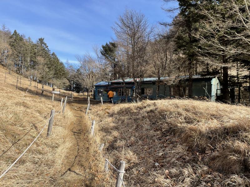 大菩薩の丸川峠に佇む山小屋丸川荘はお気に入りの場所で、今年は7月と8月のヤナギランが咲く時期に登った。この丸川荘の二代目小屋番の只木さんとは30年来の付き合いになる。三代目に小屋を引き継いだ今は時々アルバイトとして小屋に入っている。今日も常連さんの宿泊があり登っていると聞き、ささやかなクリスマスプレゼントを持って小屋を訪ねた。冬季通行規制のゲート前の駐車場は先客4台と、人気の大菩薩も年末の慌ただしい時期は寂しい。冬枯れの森に入ると空気は冷たく、沢の音も小さい。今日はタイムを意識していなかったが、何故かトレーニングの時と同タイムで小屋(写真)に着いた。少し休ませてもらい只木さんと食べるカレー飯とポットの湯を置いて嶺に向かう。日が当たらない北西の斜面は霜柱が盛大に迎えてくれる。風が無いのが救いだが、標高が上がるにつれ気温は氷点下に下がる。やがて10月に上日川ダムから登った時の喧騒が夢のような誰もいない山頂に着いた。休憩は5分だけ、早く暖かい薪ストーブと只木さんが待つ小屋に下りたい。何より只木さんが淹れてくれるコーヒーが最高の味なのだ。 TX丸川分岐07:40~大菩薩嶺10:25 2+45