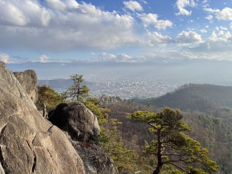 年始に立てた今年の計画で幾つか果たせなかった目標があった。その中の一つが昨年8月から再開した週一の白山トレーニングだ。1年目は目標の48回に対し43回で、目標達成率は約90%だった。それが2年目は5ヶ月が経過して10回で達成率は50%と一気に下がった。仕事を言い訳にしたくないが、コロナ5類にともない日常が徐々に戻り、久し振りに忙しい年末だった。今日は朝から雨、午前中は出勤して残務整理を、午後から緑ヶ丘に向かう。予想以上に閑散とした体育館の駐車場からスタートする。スタートから大量の落ち葉で滑り湯村山12分9秒、下りで挽回を期す。予想以上に暑く、途中で手袋と上着を取ってタイムロス、法泉寺山を25分で通過する。コル29分、汗が流れ目に入って痛い。次回からヘッドバンドは必須としよう。第2東屋39分、八王子山へのスパートに入る。果たせなかった他の目標も来年には達成したい。その思いをバネに、花崗岩の路面を強く踏み込む。八王子山の通過は43分、白山ゴールは48分、全力を出し切って今年のトレーニングが終わった。帰路はゆっくりと甲府の街を見下ろす。 SM緑ヶ丘14:10~白 山14:58 0+48(10℃ 48.53.39)