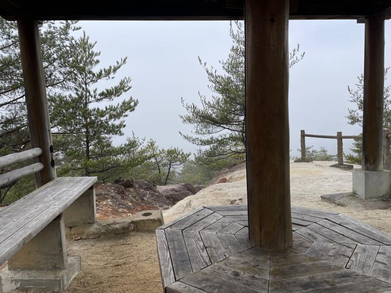 「春に三日の晴れ間なし」季節の変わり目は天気が不安定で選抜高校野球は2日連続で中止になった。県内も午後から雨が降り出す予報だからトレーニングは早めにスタートしよう。ラジオ体操を終えて、朝霧の中を緑ヶ丘に向かう。野球の試合前で賑わうグランドを横目にスタートする。湯村山への直登で体調の悪さを感じて体が重い。湯村山12分47秒、下りで呼吸を整える。体調は優れないが頑張って白山まで行こうと決める。法泉寺山25分、調子はそのままタイムに表れる。コル29分、下りで少し挽回した。第2東屋を39分で通過したい。その願いは空しく第2東屋40分05秒、それでも諦めない。八王子山45分02秒、3月に入ってからの寒さで白イワカガミの成長は止まっている。ラストは50分切りを目標に走ったが32秒オーバーで終った。今日は終始タイムにもがき苦しみ、何時もは入らない東屋(写真)で腰掛けて休んだ。 SM緑ヶ丘07:15~白 山08:05 0+50(3℃ 50.32.40)