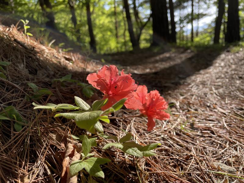 配達のカーラジオで聞いた熱中症対策の「暑熱順化」が気にとまった。「やや暑い環境で」で「ややキツいと感じる」運動を1日30分行うと体が暑さに慣れると言う。ちょうど今頃の季節から始めると効果的らしい。火曜日には22時までクライミング練習に参加して疲れもあるが、暑さに弱い体質を改善したい。14時で仕事を切り上げ緑ヶ丘に向かう。湯村山12分、法泉寺山24分、急坂を軽快に駆け下りた所で前方から山友のYさんが登って来る。5年前に、この白山をトレーニングに最適と教えてくれたYさん。ストップウォッチを止める。久しぶりの再会に互いの近況など、山好き同士の会話は火が付いたよう、直ぐに30分も経過してしまう。すっかり汗も引いた頃のリスタートは体も気持ちも軽い。今日のトレーニングは前後半で完全に2分割になったが、山での休憩の効果を再認識した。参考タイムは八王子山42分、白山47分となった。八王子山に戻る区間はヤマツツジが満開を迎えている。中には地面すれすれに(写真)で走っていると踏みつぶしそうだ。Yさんに聞いた神社の裏に残る白イワカガミ2輪も確認できた。「暑熱順化」続けてみよう。 SM緑ヶ丘14:40~白 山16:00 0+47(21℃ 47.34.38)