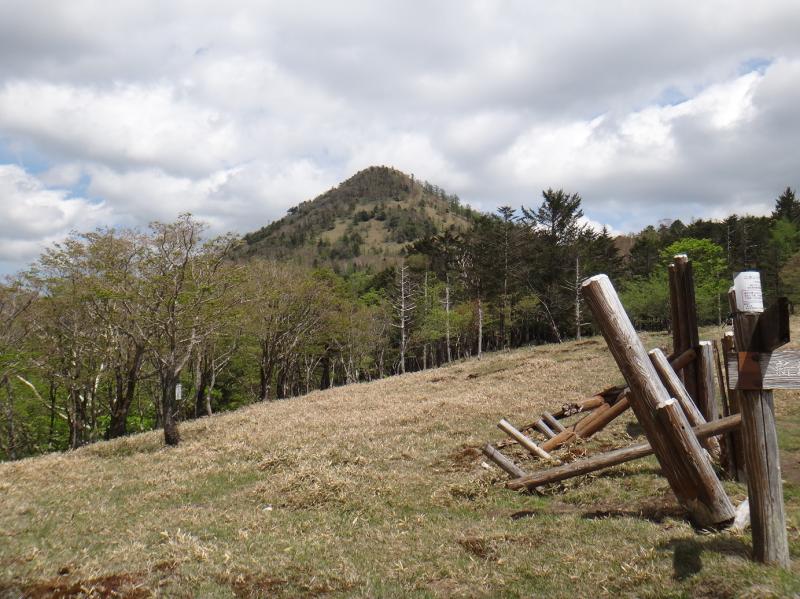 快晴の予報は外れたが、山頂は満開のシャクナゲが迎えてくれた。帰路は水干(多摩川源流)で喉を潤し、広大な草原の雁峠に寄り道して開放感に包まれる。清らかな沢を渡る涼しい風に吹かれ、若葉の緑が眩しい豊かな森を歩いた。ハルゼミの大合唱は賑やかでも、静かな平日の笠取山を存分に堪能できた。同行は今日が2回目の参戦となるM君(24歳)で、あり余る体力で軽快な歩行を見せる。これから色々な経験を積んで(上手に怖い思いもして)立派な山ヤに成長して貰いたい。山歩きの基本一番は読図だから、地図は取り出しやすいポケットに入れ、分岐では必ず地図を見る習慣を、同時に次のポイント到着時刻を算出する。理屈抜きの実践練習も、素直な性格だから飲み込みが早い。それに足も早いから計算タイムを大幅に前倒して山頂に到着してしまう。初めて見る木々や花に感動する感性と、飯を食べる速さにも、M君に山ヤとしての資質を見た。かつて雁の群れが上空を越えた雁峠からは、笠取山の名前の由来になる端正な陣笠(写真)の山姿が見える。この辺り6月中旬頃にはレンゲツツジが綺麗に咲くよ。これからも若い人に可能な限り山の魅力を伝えていきたい。作場平08:40~笠取山10:30 1+50(ヤブ沢峠経由) FT