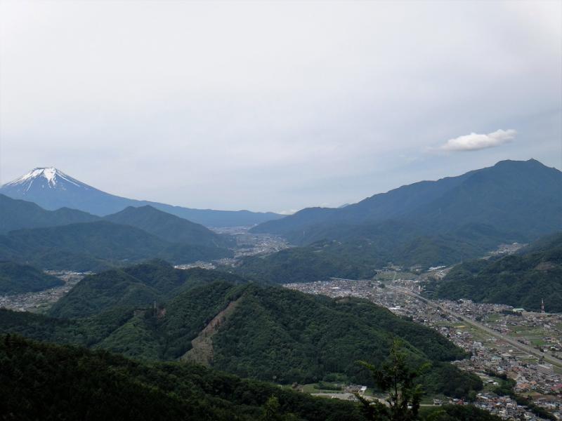 今年はクラブで企画し自治会の体育班が主催するハイキングが予定されていて、今日はその候補の一つ都留市の九鬼山(970m)を下見で歩いて来た。計画では富士急行線の田野倉駅をスタートして山頂に立ち、弥生峠経由で杉山新道を禾生駅にゴールする標準タイム3時間のコースで、下山後にリニアセンターを見学する。この計画で面白いのは山頂の真下を山梨リニア実験線のトンネルが貫通している事で、人類の陸上における移動手段として最先端で世界最速のリニアモーターカーが時速500kmで疾走する上を、人間の基本的な移動の手段である徒歩で山に登り何かを感じてもらう。運が良ければ山上から富士山をバックに走るリニアの車両が見えるかも。下見のポイントで重視するのは小学生の体力レベルでも安全に登降できるかで、特に下りに危険が伴なうので本番では下山コースになる禾生駅側を重点的に確認した。コースは山頂直下がやや急坂ではあるが特に危険個所は無く、山頂からは北西方面の眺望が開けて達成感も得られる。また九鬼山は平凡な里山と思いきや、秀麗富嶽十二景の十番で途中のビューポイント天狗岩からは雪形が残る富士山や三ッ峠(写真)を望むことができた。一つ問題は登る季節を選ぶ必要があり、標高が低いため夏は暑さが厳しく秋の10月頃が理想と思われる。水路橋09:25~九鬼山10:40 1+15(愛宕神社コース)