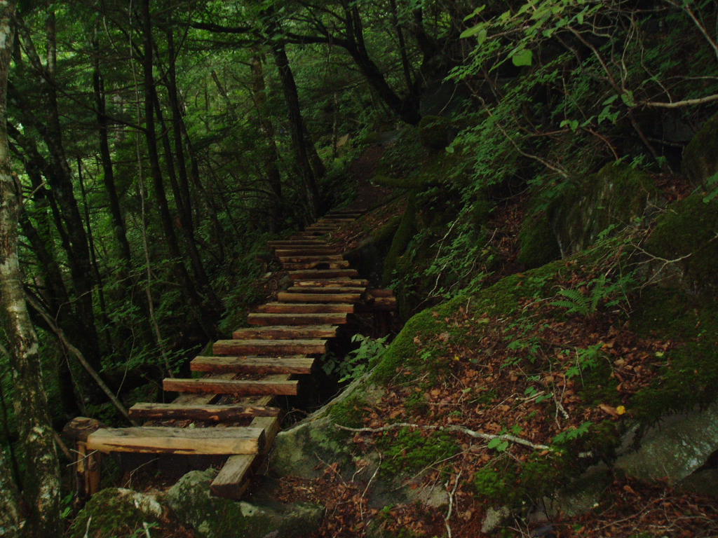 連日夏らしからぬ天候が続き、午後の早い時間から雷雨の確率が高い。だが朝の青空を見て、すぐに山支度を整える(低山なら大丈夫)経験的カンだ。 青梅街道は台風7号の土砂崩れで通行止だが柳沢峠までは入れる。柳沢ルートで登山道に入ると、すぐにブナの原生林の道が始まる。目指す丸川峠へは尾根づたいの緩やかな登りで、東京都水道局が管理する水源林の中を行く。写真は、丸川峠直下(1680m)の苔むした登山道。訪れる人が少ないので、苔のじゅうたんも荒される事なくその美しさを保っている。山小屋丸川荘の只木さんとは10年来の付き合いになる、1年振りのお喋りは尽きないが天気が心配、おいしいコーヒーを頂いて早めに峠を後にした。柳沢峠09:45~丸川峠11:55 2+10