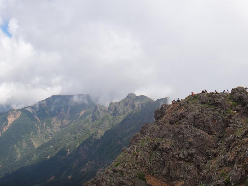 週一の湯村山トレーニングで体力は格段に向上した積もりでも、3日前の編笠山では暑さを理由に納得の歩きができなかった。仕事も忙しく疲れもピークだから休養が必要にも思えたが、今日は「山の日」実践トレーニングでもっと強くなりたい。目指すは赤岳(2899m)美し森の駐車場を起点に県界尾根(標高差1430m)を登り、下山は真教寺尾根を戻る一般には1泊2日のコース。登りの標準タイムは5時間、目標を3時間30分に設定して編笠山の雪辱を期す。暑い時期のロングコース、途中に水場が無いからドリンクやお茶など4リットルと、食料や道具一式でザックは8kgになった。いつものようにスタートから飛ばす。誰にも会わず小天狗70分、この先2グループ4人を追い越して大天狗120分、下山してきた男女と言葉を交わす。天気は霧で視界はないが涼しくて快調だ。核心部入口155分、ここでヘルメットと革手袋を着ける。この先はクサリと梯子が連続する急峻な岩場で落石多発地帯、数年前にも女性が亡くなっている。幸い上部に登山者がなく心理的には楽でも、危険個所は出来るだけ速やかに通過したい。しばらくは呼吸を整える暇もなく腕力も総動員してのクライミングが続く。やがて正面に頂上小屋が見えてくるとゴールは近い。デジタルウォッチは決めていた小屋の玄関前で押した。3時間30分3秒。山頂は大変な賑わい(写真)南峰から北峰と横岳、硫黄岳が霧の切れ間に見えた。真教寺尾根は花が多い。2316峰で昼食の後は、静かな森をのんびり下った。美し森07:15~赤 岳 10:45 3+30(県界尾根) 3.30.03