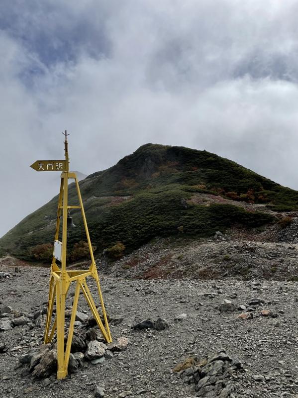 秋の白根三山縦走を目標にトレーニングに励んできた。それがコロナによる市営山小屋の休業が30日まで延長され計画の変更を余儀なくされる。考える時間は十分にあったのに、山梨百名山の最後に残った農鳥岳に拘った結果、奈良田から大門沢を農鳥岳への標高差2196mを日帰りと、半ば無謀なプランを決行してしまった。ただ、土曜日に最接近した台風14号(温帯低気圧)の影響は考慮した。沢の増水が心配で大門沢小屋に電話すると、若い小屋番は感じ良く親切にアドバイをくれた。降雨は少なく水量も1~2割増し程度だから本流は大丈夫です。問題は小屋の上部と下部に各2ケ所ある支流の横断で、普段は飛び石で渡れるが渡渉になる事があります。この情報通り最初の小古森沢で先行する男女グループが難儀している。激しい流れと濡れた岩を前に誰でも怖いが、飛び石は躊躇なくリズムで渡るといい。それにしても沢沿いで涼しいはずが、台風の置き土産か蒸し暑く、Tシャツ1枚でも汗が吹き出す。地図から読む標高も1200mに満たないから仕方がない。暑さより気を病んだのがルートの地形で、尾根を高巻いたり河原に下りたり複雑な変化を繰り返す。昼中は随所にある赤テープが進路を示してくれるが、帰り途中で日没ならヘッドランプで下るのは御免だ。大門沢小屋8:40やっと半道中か、まだまだ先は長い急登が続く。やがて本流の源頭部まで上がった頃、ガスが湧き視界がなくなる。台風一過の乾いた青空を期待して来たが裏切られた感じだ。代わりにナナカマドの赤い実に高山の秋を感じる。12:20下降点の鐘を鳴らして先を急ぐ。13:05農鳥岳(3026m)に立つと一瞬だけ雲が切れて西農鳥が見えた。山梨百名山100本目の標柱(写真)は厳しい自然に朽ち掛けながらも凛として建っていた。奈良田05:45~農鳥岳13:05 7+20