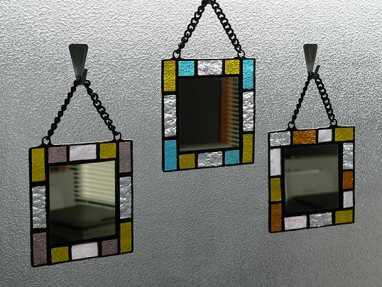 大震災復興支援のために少しでも役に立ちたいと丸川荘の只木さんと始めた『森のランプ』のチャリティー活動は、皆様の温かい善意により年末までに累計35台を販売して当初の目標を達成することができました。ご協力頂いた皆様に心から感謝いたします。売り上げは全額を宮城県・岩手県・福島県の被災地で活動するボランティアグループに支援金としてお送りさせて頂きました。今年はチャリティー企画の第2弾として、壁掛け用の鏡を制作しました。サイズは10cm×10cmの小さい鏡ですが、光の変化で表情を変えるステンドグラスの不思議な魅力を感じて頂けます。今回は透明系のガラスを使用した明るい雰囲気のミラー(写真)を展示し販売(1300円/全額支援金)を始めました。被災地を継続的に支援して行くために、今回も皆様のご協力をお願い致します。