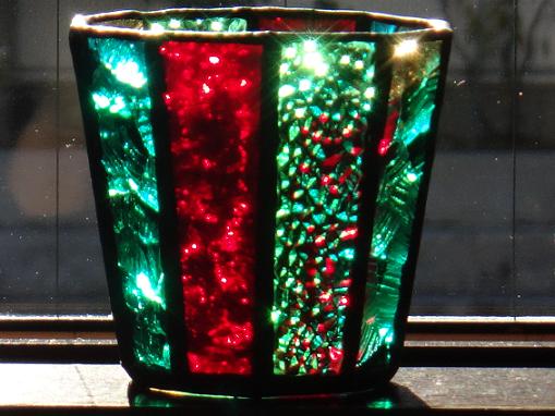 被災地支援活動の「森のランプ」第4弾としてクリスマスキャンドルホルダーを制作しました。高さ70mm、上部の径78mmの10角形で色の組合せはクリスマスをイメージした鮮やかな原色系の物と、落ち着いたシンプル系の2種類で、底にタブレット型のロウソクが収まります。ロウソクを灯せばもちろん、窓辺に置いて自然光を透かせば写真のようにキラキラとした表情を見せてくれますので、ペンスタンドや小物入れとしてもご利用頂きたい作品です。今回もチャリティー販売(3500円)で売り上げは全額を現地で活動するボランティアに支援金としてお送りさせて頂きます。また今回も「璃房ステンドグラス」のご協力を頂き五味先生が側面のガラスカットを担当してくださり、プロの技に負けじと私が底面の円形をカットしています。仕上げはランプで6角形を40台制作しましたから簡単だと考えていましたが、綺麗な正10角形に仕上げるのは意外と難しく、多少のイビツは手作りの味だとお許し頂ければ有り難いです。被災地では厳しい寒さの2度目の冬を迎えています。今回も皆様の温かい善意をよろしくお願い致します。