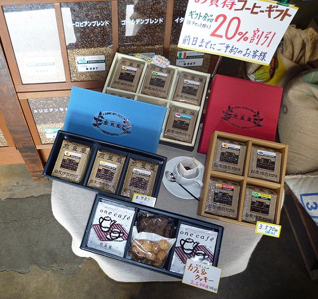 暖かく穏やかな師走の入りを迎えましたが、寒暖の差が激しく何かと気忙しいこの季節、特に健康管理に注意したいと思います。さて、毎年大好評のお歳暮ギフトのご案内です。当店では22種類のコーヒーからご予算・ご希望に応じて自由にお選びいただけます。また、砂糖・ミルク・クッキーetcを詰め合わせて、お客様だけの オリジナルギフトが出来上がります。さらに、前日(24時間前)までにご予約いただけますと表示価格から20%値引きの大変お買い得な価格でお求めいただけます。お世話になったあの方へ、冬の贈り物一番人気の「コーヒーギフト」是非ご利用ください。(インターネット予約はギフトの頁からお入りください)