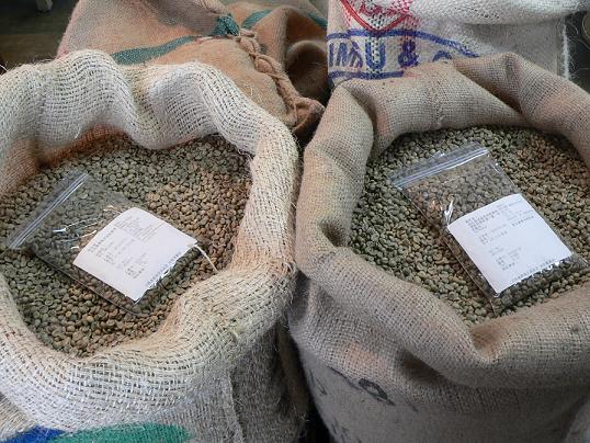 今日は彼岸明けですが甲府では午前10時頃から冷たい雨が本降りとなり標高の高い山では雪でしょう。春が待ち遠しく本当に今年の冬は長く感じますが、日本の寒さには関係なく毎年この時期はニュークロップ(新豆)が続々と入荷してきます。写真は、2月8日に入港したホンジュラスHG(右)と2月21日に入港したタンザニア・ギルマンズポイント(左)でビニール袋に入ったサンプルと同一の豆で有ることを確認します。サンプルは事前にテストローストして味は合格していますが、本番の焙煎では神経を使います。それは、収穫から時間の経過したカレントクロップ(古豆)に比べ、水分量の多いニュークロップは豆も硬く同じような焙煎では角が立った味になってしまう為で、通常よりも蒸し時間を長く取り、煎り上がりをほんの少しだけ深く仕上げます。今日はタンザニアのニュークロップを焙煎しましたが、味が丸くなり過ぎてキリマンジャロ特有の力強い酸味が飛んでしまい満足のいく結果が得られませんでした。明日、再度プロセスを変えた焙煎でチャレンジして味を 調えたいと思います。