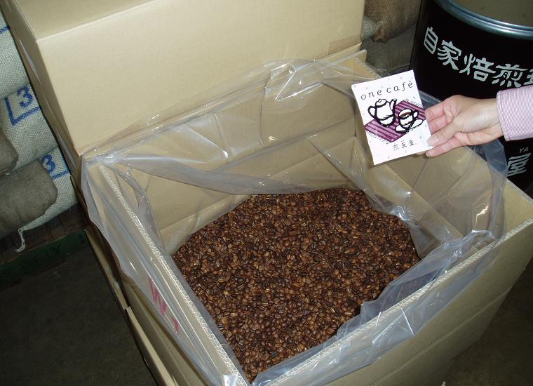 カップオンドリップ復刻版 「One Cafe」の発売から1年6ヶ月が経過しましたがグッドデザインの受賞も大きな追い風となり4月の出荷は18000パックと新記録を更新しました。こうなると忙しいのは原料になるコーヒーの焙煎作業です。コーヒーバックを手掛けているコーヒー会社の大半は生豆の調達から一番大切な焙煎も全て充填加工メーカーにお任せで委託していますが、自家焙煎に拘る煎豆屋では極めて非効率な方法でも100%自社で吟味し焙煎した豆を使用しています。今日も5月の販売分として120kgの焙煎を仕上げて15kg×8箱に梱包(写真)し神戸の加工メーカーに送りました。この後5月2日にメーカーの全自動ラインから15000パックのOne Cafeが誕生し連休明けに煎豆屋に届きます。こうした味に妥協しない姿勢がOne Cafeヒットの要因だと信じながら5月の出荷目標30000パックを目指しています。