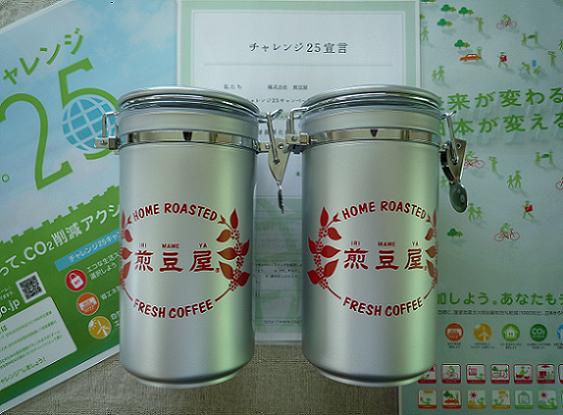 4月1日にスタートした煎豆屋の「チャレンジ25」(温室効果ガス排出量25%削減)第2弾「エコキャニスター」キャンペーンは大好評に付き3回目のキャニスター200本ご用意して7月1日から販売しております。