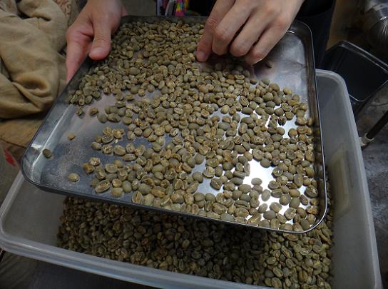 甲府では7月23日から42日連続の真夏日が続いています。雨も少なく山梨特産のぶどうの色付きにも影響が出始めています。爽やかな秋風が待ち遠しい思いですが、9月に入っても今しばらくは暑さに我慢の日々が続くようです。暑さにプラスして今年の夏は、自治会の夏祭りや子供クラブなどの行事とその準備に追われた毎日で、しばらく振りのパライーソ通信の更新となってしまいました。さて本題ですが、自家焙煎のコーヒー店では当たり前の作業で今まで取り上げなかったコーヒー豆の選別作業についてお話したいと思います。コーヒー豆の選別とは欠点豆を除去するのが目的ですが、同時に石や金属、木片、穀物などの異物も取り除きます。大手のロースターでは電子選別機を使用し短時間で大量のコーヒー豆を仕分けますが、当店の様な小規模の焙煎店では手作業による選別作業(ハンドピック)を行います。煎豆屋では焙煎前の生豆で選別してさらに焙煎後の煎豆でもハンドピックを行う二重選別で味に悪影響をもたらす欠点豆を完全に取り除く地道な作業が厳しい暑さのなか続いています。