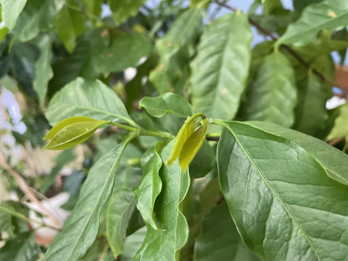 4月20日「穀雨」、天からの贈り物である恵の雨が届く時期で、天気は周期的に変わります。今日の天気は曇り時々晴れ、気温は25℃以上の夏日になる予報です。事務所で快適に過ごすコーヒーの木は若葉が次々と芽吹いています。今は長さ1cmほどですが、一週間もすると5~6cmほどに大きくなり、成長スピードの速さに驚きます。また葉の色も濃い緑色に変わります。薄めに希釈した液肥を与えました。今年こそ花を咲かせたいと思います。