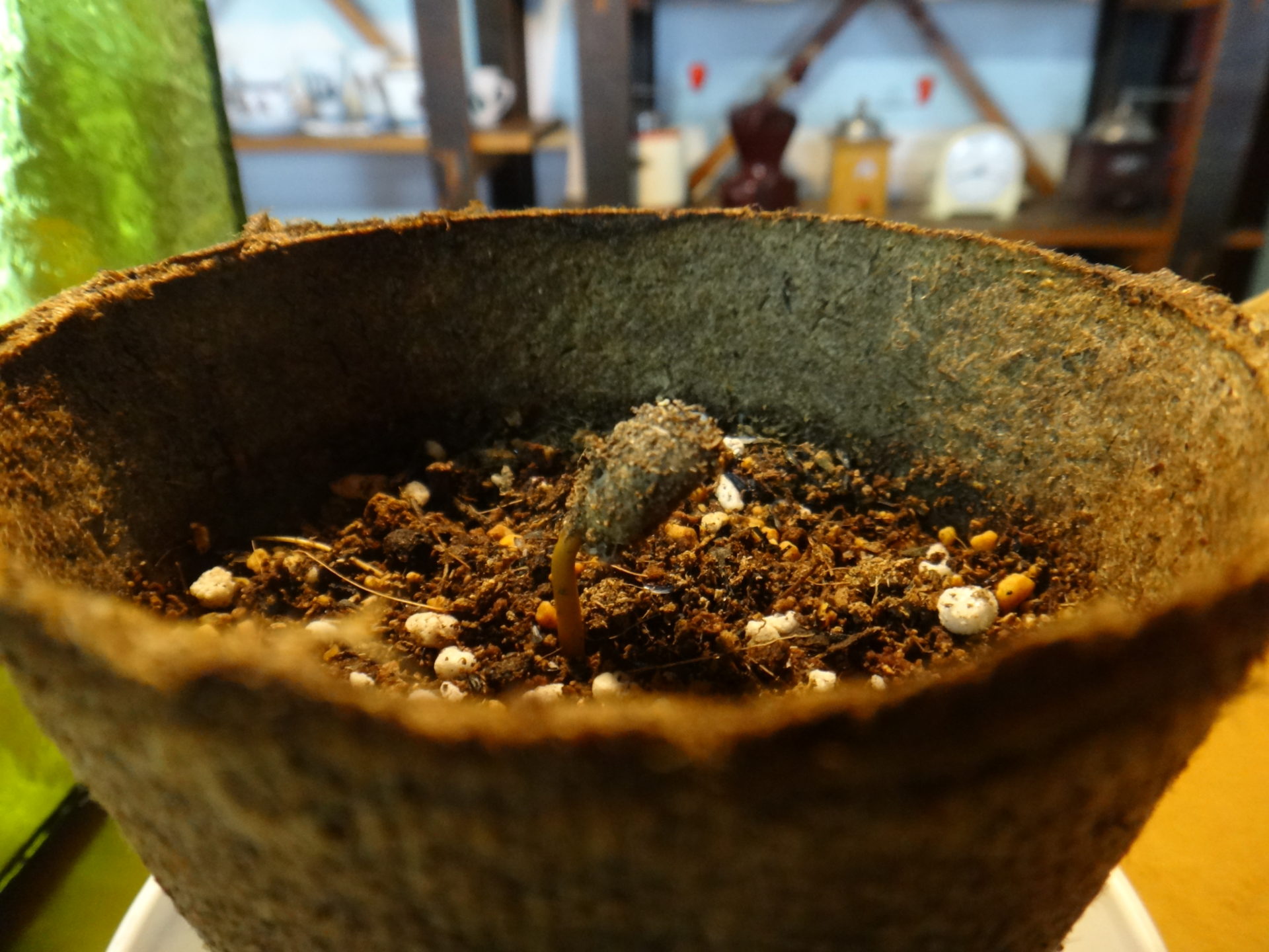 発芽から2日、1cmほどのコーヒーの芽(2019-10-31 更新)