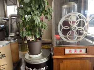 11月4日、3連休の中日は午後から雲が広がりましたが、爽やかで穏やかな一日でした。ここ数日は昼には夏日になっても朝は一桁の気温に下がり、極端な温度差があって驚きです。このためコーヒーの子供たちは3階の事務所に移動しています。店が寂しいので一番元気なポットを店頭に置いています。店内は午後からは日差しが入らないので、午前中は駐車場に置いて朝日を浴びて光合成です。11月とは思えない陽気に植物は人間以上に敏感になっているようです。
