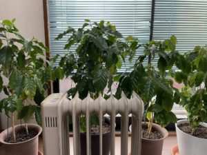 2月4日「立春」、今朝はプラスの最低気温と朝日の明るさに春が感じられました。厳しい冬の寒さも和らぎコーヒーの子供たちはとても元気にしています。それもそのはず晴天の日中は25℃超え、夜間はオイルヒーターで10℃をキープする、快適な部屋で過保護に育てられているからです。最近では水やりも週に2回のペースになり、完全な成長期の様相を見せています。勢いのあるポットはこのまま初夏に花を咲かせるのではないかと思うほどです。試しに肥料を与えたい衝動に駆られますが、無謀でしょうか?