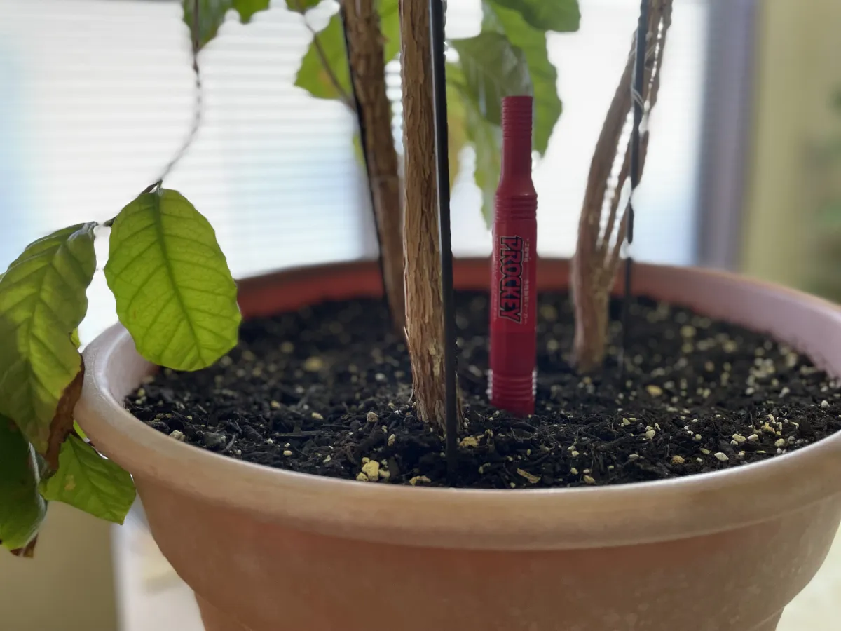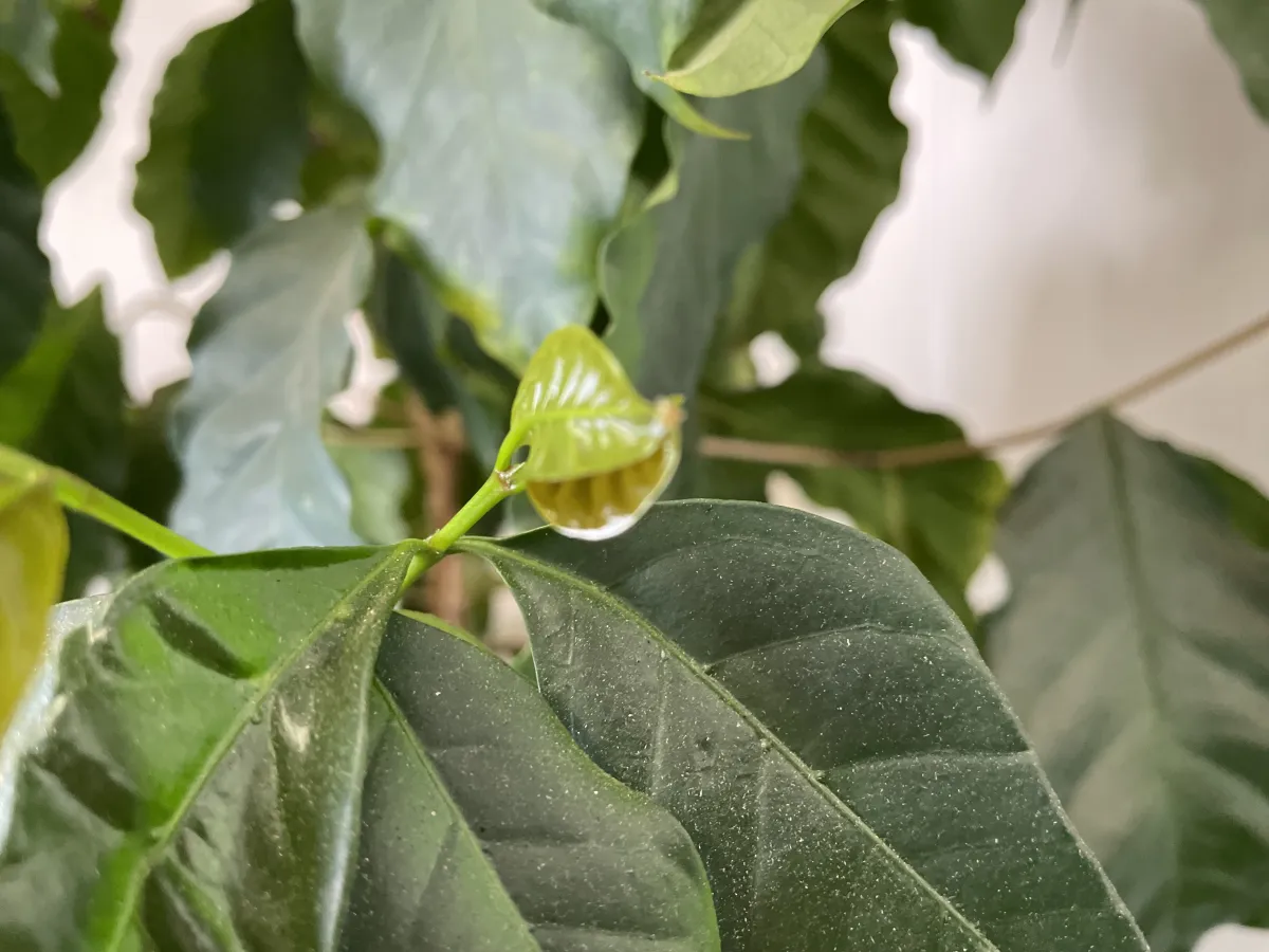 2月19日「雨水」、朝はマイナスでも日中は寒さが緩み春の兆しが感じられた一日でした。この朝晩と日中の寒暖差がコーヒーに刺激を与えているようです。ほんの少しですが若葉の芽吹きが見られます。思わず薄く希釈した液肥を与えたくなりますが、そこは落ち着いて様子を見ます。完全に成長期になる前の施肥は肥料やけの恐れがあり要注意です。