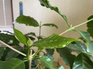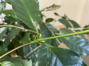 3月20日「春分の日」、昨日は雪が降り県内では山中湖で25cm、甲府でも1cmの積雪がありました。ここ数日は寒暖の差も激しく「春に三日の晴れ間なし」、今日は青空が広がっています。コーヒーの子供たちが過ごす温室も空調のON/OFFを忙しく繰り返しています。冬の間は休眠状態だったのですが、春の気配を感じて気の早い新芽が芽吹き始めました。それに比べ3つの花芽は相変わらず静かな様子です。20℃超えの彼岸明けに期待しています。