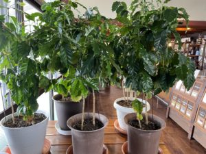 5月15日、11時の気温は15℃、湿度は88%、冷たい雨が降っています。予定どおり連休明けに店頭に並べたコーヒーの子供たちも寒そうです。天気は周期的に変わり週間予報では水曜と木曜の最高気温は33℃と報じています。このため日中の閉め切った部屋では危険な暑さになる自宅を逃れて店に疎開した訳です。日々、目の届く所に置いて大切に育てながら観察記録を更新する予定です。ご来店の際には美しい緑をご覧いただきたいと思います。