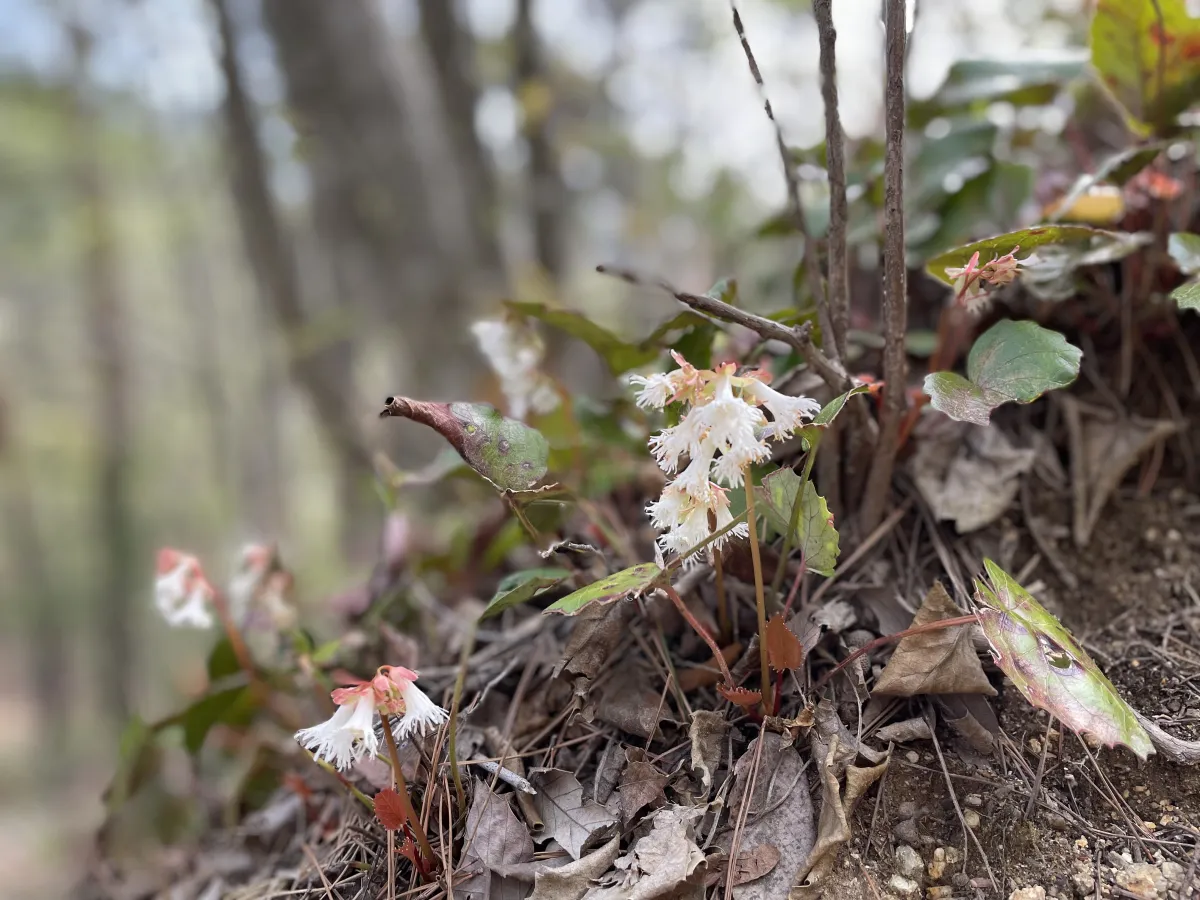 昨日は甲府で今年一番の最高気温29℃を観測して汗ばむ暑さだった。春の天気は周期的に変わり雨量も多いから、晴れて気温が上がれば植物の成長は一気に進む。一週間前に花芽が膨らんでいた白山の白イワカガミは間違えなく開花しただろう。鮮やかなパステルグリーンのトンネルを見上げながら緑ヶ丘をスタートする。湯村山14分ジャスト、上着なしTシャツ1枚だから身が軽い。法泉寺山28分、給水とヘッドバンドを着ける。コル33分、トレランの青年が追い越して行く。第2東屋44分、良いペースだ。八王子山を48分50秒で通過する。急降下を数歩進むと先行者が屈んで写真を撮っている。群生地で白イワカガミが満開に咲いている。ここでストップウォッチを止める。撮影を終えた男性は赤いイワカガミを探しているそうだ。何かの変異で赤が咲くらしい。先週と同じ個体を同じアングルで撮影する。この間3分ほどで再スタートすると54分のゴールタイムがでた。SM緑ヶ丘07:30~白 山08:24 0+54(19℃ 54.07.39)