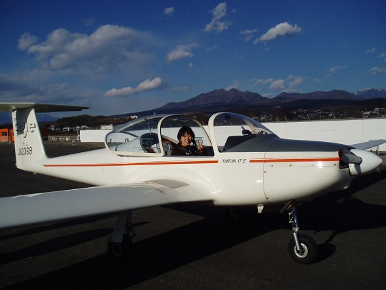 初めて上空から甲府の街を見た時の情景が、今でも脳裏に焼きついている。そんな感動を、より多くの人に与えるのもプライベートパイロットの勤めだろう。昨日、関東地方に雪を降らせた低気圧は北東に抜けて、気圧配置は冬型だが、幸いに朝から気流も穏やかで、晴れ渡った青空に新雪の南アルプスや八ヶ岳が美しく映える絶好のフライト日和になった。「いいですか、出発しますよ」富士山を正面に見て離陸し、真っ直ぐに上昇すると歓喜の声があがる。出来るだけ盆地全体が広く見渡せるように、高く(対地750m)スピードはゆっくりと、方角と主要な建物を説明しながら、それぞれの自宅や勤め先を探す。写真は、フライト前のKさん(大学1年生)、自宅を見つけて満面の笑みを見せてくれた。今日経験した空の散歩が思い出に残ってくれたら嬉しい。双葉~双葉 20分×6フライト 2+00