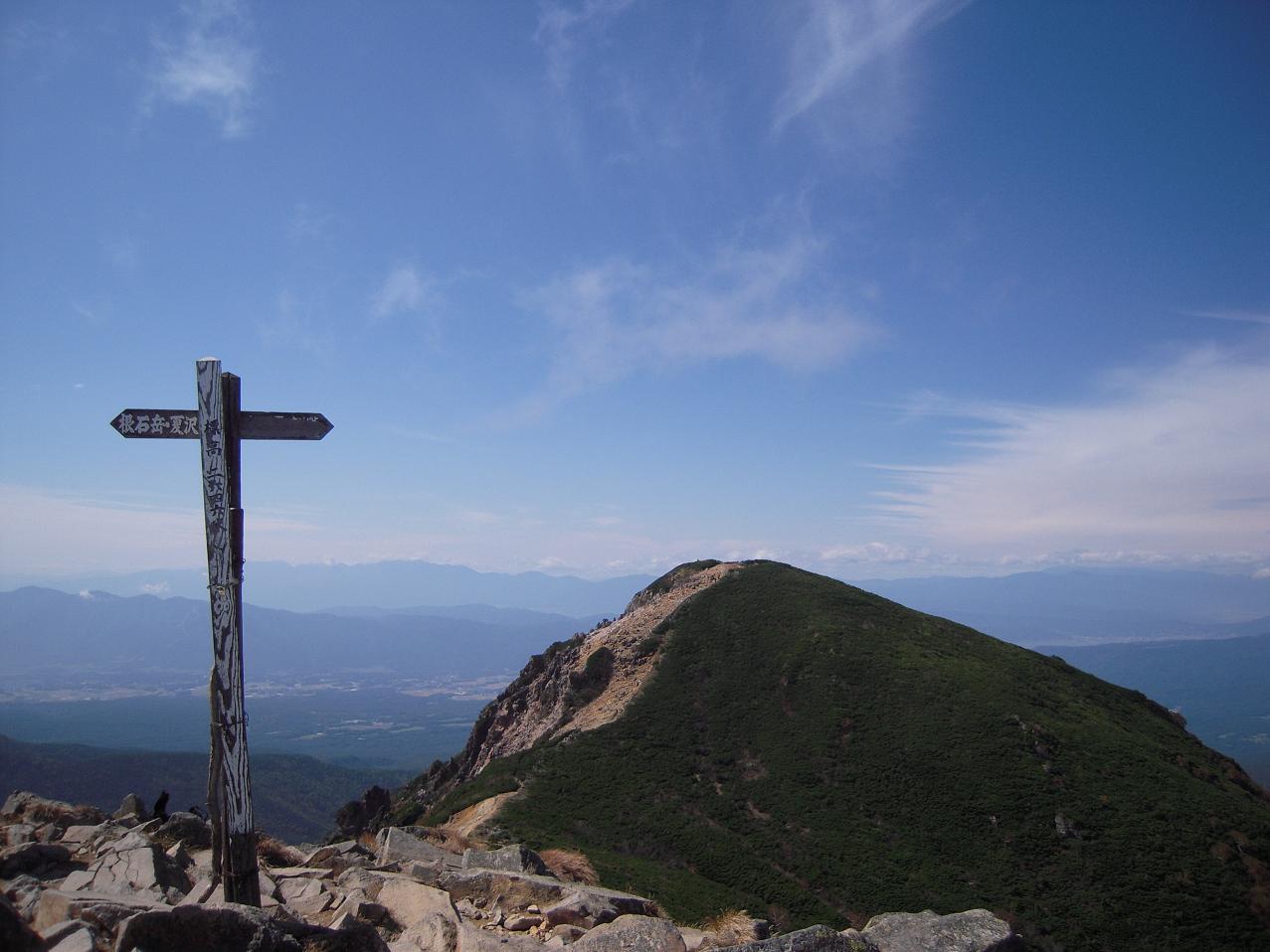 写真は、東天狗から吊尾根の向うに越えて来た西天狗(2646m)を振り返る。
