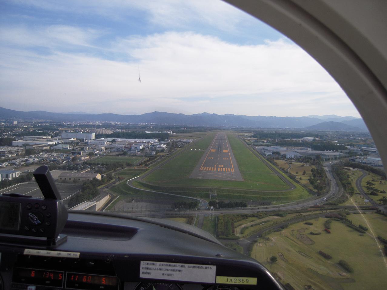 水曜から土曜まで4日連続の晴天が肝心の日曜日に崩れ、午後から雨の予報がでた。前回の新潟から松本へのフライトで感じた高速巡航に使用するマイナスフラップのセッティングに疑問があり、整備士に依頼してあった左右バランス調整が終り、テストを兼ねてローカルプランで離陸する。