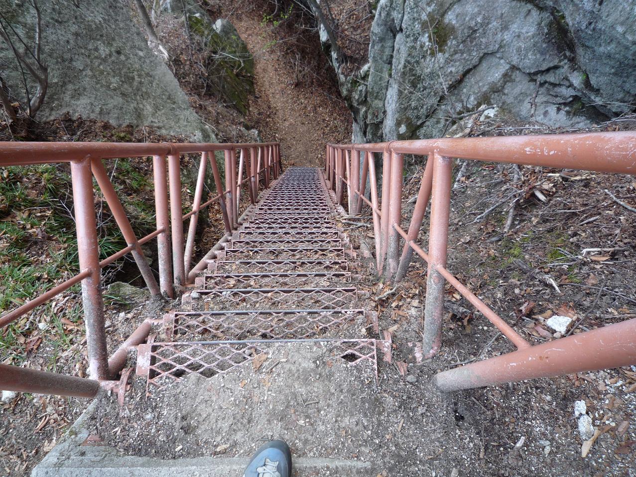 今では立派な鉄製の階段(写真)が掛けられ安全に登降できる様になっている。
