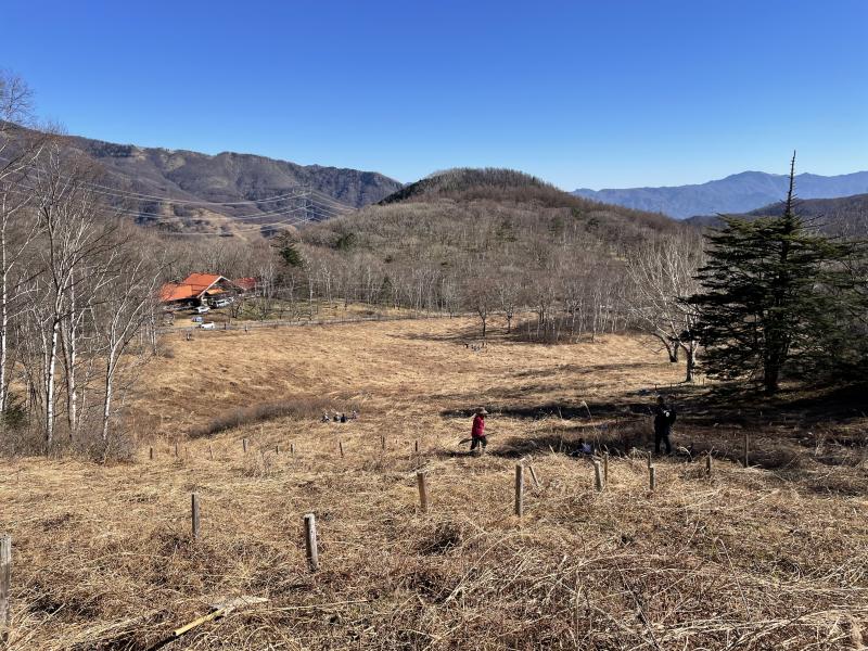 小春日和となった今日、23日に荒天で延期になった乙女高原の草刈りが開催された。9時前からグリーンロッジには200名を超えるボランティアが集まった。受付と簡単な説明のあと、直ぐに作業に入る。昨年まではコロナのために人数制限があったが、今年は久し振りに一般の参加を受け入れた人海戦術による本来の草刈りとなった。今年で21回になる草刈り作業は効率よく分担されている。機械で刈る者、熊手で掻き集める者、刈った草をブルーシートで運ぶ者、遊歩道のロープを回収して運ぶ者、刈った草を遊歩道に敷く者。風もなく汗ばむ日差しの中、作業開始から2時間ほどで広大な草原が見事に刈り取られた。予定より30分以上も早く、昼前には集合写真を撮って解散となった。最高の晴天だから、このあと最高点1730mの乙女頭(ヨモギ頭から先は踏み跡薄い)までコンパスを頼りに歩いた。FTロッジ12:00~乙女頭12:30~ロッジ13:00 1+00