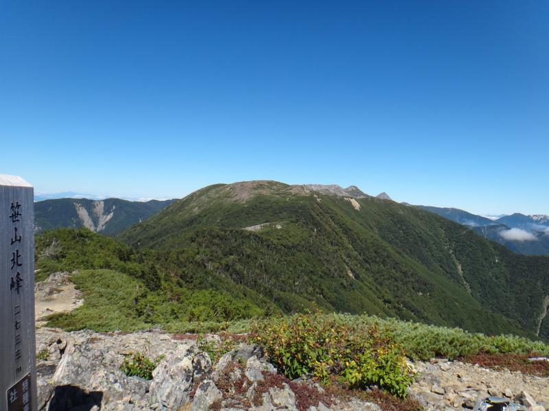 昨年末に書店で見つけた「もう山でバテない」。この本のタイトルが引っ掛かった理由は、2カ月前の10月にY君と登った鳳凰三山にあった。登山口の青木鉱泉から標高差1500m、コースタイム5時間の中道ルートを薬師岳に登る御座石の手前だった。多機能時計を使うY君が後ろから「200mしか登って無い」と声が掛かった。そう言えば少し前から何人もの登山者に追い越されていた。腰痛で調子が悪かったのは言い訳にすぎない。その結果、薬師岳まで70分も超過して主峰の観音岳は断念となった。日没が早い季節の日帰りだから仕方ないが、Y君には申し訳なかった。また、300m/hの計画タイムで登れなかった自分が情けなかった。年齢的な体力低下は自覚していたが、それでもバテた意識は認めたく無かった。そんな折に出会った本「もう山でバテない」は人生を変えるほどの一冊になった。簡単な日常のトレーニングを実験データを基に解説した内容は親しみやすい。これに従って、身近にある里山(湯村山~白山)を練習場所に決めて毎週の習慣にした。効果は3ヶ月で表れた。体力に余裕が持てたことで登山が格段に楽になり、練習が励みになる好循環が生まれた。お陰で9月には念願の笹山ダイレクト尾根を日帰りで、その11日後には北岳も日帰りで楽々と登れた。(写真は笹山から真北に12kmの北岳を望む)「もう山でバテない」来年も更なる高みを目指して頑張りたい。