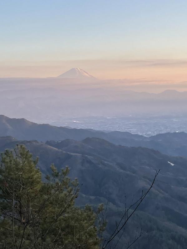 2018の年末から始めた週一のトレーニングが間もなく3年になる。最低1時間しっかり負荷を掛ける歩行で脚力アップを目指して来た。結果は6kgの減量と血圧の数値に表れ、体力が向上したことで登山に余裕が生まれた。こうなると仕事が忙しくなる冬場も休まず体力をキープしたい。今日は15時過ぎに時間が空いたので自宅から15分の太刀岡山登山口に向かう。普段は湯村山から白山が練習コースの定番だが、飽きた頃に太刀岡山が浮上する。スタートして直ぐに標高差400mの激登りが始まる。特に今日は時間が遅いので日没との競争になるから気合を入れて頑張る。だが焦る気持ちと裏腹に、登山道に堆積した落葉で足元が滑り、気合は空回り。それも鋏岩で直角に右折して尾根に上がると落葉から解放されスピードアップできる。やがて額に汗が流れた頃、南アルプスに夕日が沈む寸前の山頂に立った。南方に甲府盆地と富士山を望み(写真)休む間もなく下山にかかる。上空に残った薄明りを頼りに急坂を下る。やっぱり「秋の日は釣瓶落とし」は本当だった。祠が安置された巨岩を過ぎた辺りから一気に暗くなり、ヘッドランプ無しで落葉の急坂は怖い。何度もスリップして尻餅をつきながら、登り以上の時間を費やして下山した。通い慣れた山に対する過信があった。 FT亀沢川橋15:30~太刀岡山16:10 0+40
