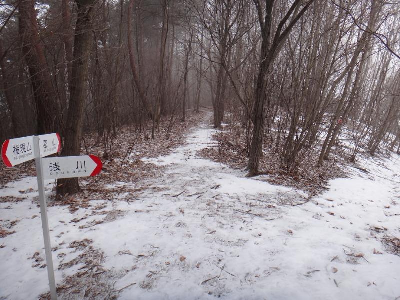 今月11日に東京の40代男性がハイキングに出掛け、中央線の猿橋駅に設置されている防犯カメラの映像を最後に行方不明となった。どの山なのか登山届けはなく家族にも告げていないから、警察は猿橋駅からのアクセスを手掛かりに百蔵山、扇山、権現山を捜索したが発見に至っていない。この三山だけでも広大な面積で、四方から何本もコースがあり、携帯の電波も悪く捜索は困難を極めた。上野原から大月の山域は標高も1000m前後と低く、首都圏から近いことで気軽にハイキングが楽しめるエリアだが、冬のこの季節は全くの別物に変る。今日は浅川を基点に権現山と扇山の計画で出掛けたが、R20の道路工事渋滞で遅れ、権現山(1312m)から下山直後に雪が降り出して視界も悪く、扇山は断念して浅川峠(写真)から往路を戻った。注意点1.落ち葉が堆積して道が不明瞭。2.入山者が少なくトレースが薄い。3.落ち葉の下が凍っている。4.日陰はアイスバーン、日向は泥んこ。5.山頂以外は樹林帯、上空から発見できない。
