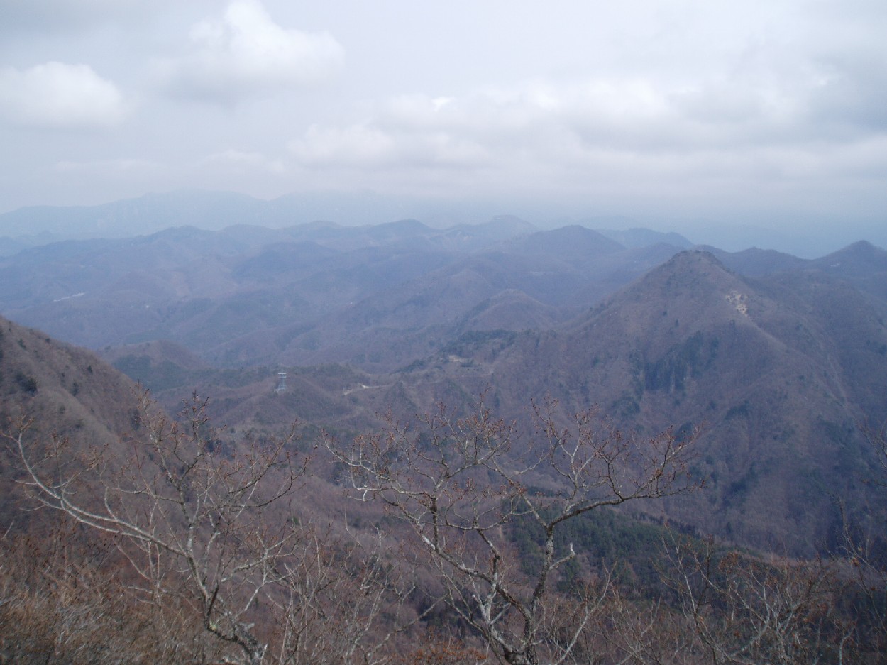 写真は、山頂から東方2kmに位置する曲岳(1642m)とその中間にある観音峠(無線中継塔の所)、南風がこの谷にどんな気流を作るか想像してみた。