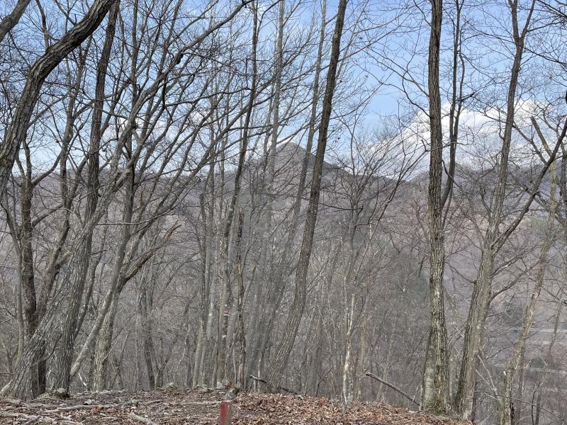 笹子川の源流を周回するバリエーション5回目(8名)に、正式に会員として参加させて頂いた。出発前にリーダーからルートの説明があり、唐突にもトップを託される。驚きと嬉しさ、光栄であると同時に責任を痛感する。笹子トンネル南口の新田集落(702m)を基点に南東尾根を登り笹子鴈ヶ原摺山(1358m)を目指す。この後は稜線を西進、笹子峠を経由して中尾根ノ頭(1278m)へ、さらに300mほど先の下降点から中尾根を下山する計画。先ずは山に取り付くスタート地点の決定が難しく、リーダーに助言を求める。尾根に乗ってからの方位は明解だったが、急傾斜の岩場に対するルートファインディングに苦慮する。下降点は右手の岩崖が顕著な目印で直ぐに特定できた。下山は1093m点と送電線がチェックポイントだが、現在位置の把握を完全に間違えた。何とか計画通りに下山できたが自己採点は50点。まだまだ未熟だ。写真は1093m点から見た笹子鴈ヶ原摺山、右のスカイラインが南東尾根で急峻さが分かる。 TX新田集落06:50~笹子峠11:40 4+50