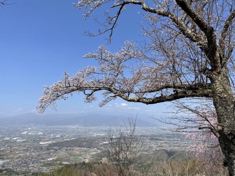 なぜか関東地方だけが不安定で、典型的な春の天気に翻弄される日々が続く。規則性のない周期で、晴れと雨が繰り返されて、雨も降りだすと半端ない降り方をする。週間予報もコロコロ変わって、まったく予想がつかない。こうなると桜の花見は天気に合わせるしかないだろう。午前の仕事を早目に終わらせ、職場から20分で山之神千本桜の駐車場に着く。ほぼ満車、ぎりぎりスペースを確保して直ぐにスタートする。登りは甲斐百山のたいら山(934m)までトレーニングで頑張り、花見は下りに桜越しの南アルプスや八ヶ岳を楽しもう。僅かで通過する鹿ゲート付近は散り始め、路面はピンク色に染まっている。スタートから7分で登山道入り口、この付近は満開で、見事な古木には思わず足が止まる。山之神社までの参道沿いに植えられた桜は、標高が上がるにつれ開花は遅れている。最上部では3分から5分咲きで、途中の展望台からは桜越しに甲府盆地を一望できた。SM山之神10:35~たいら山11:40 1+05(CT2+10)