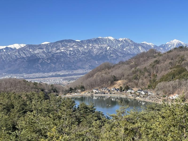 今朝は放射冷却で-5℃まで冷え込み、ラジオ体操の公園からは快晴の青空に雪の南アルプスが映えた。山の会で運営委員を務めるTさんから25周年記念のバンダナを渡したいと連絡がある。約束の10分前に緑ヶ丘に着くとTさんは支度を終えて待っていた。4月から始まる登山教室のチラシを湯村山と八王子山の東屋に補充しに行くと言う。受付開始1週間で6名の申し込みがあった登山教室の目玉は7月の北岳だろう。準備してTさんの後を追ってスタートする。直ぐに追い越して湯村山12分、花粉対策のマスクが苦しい。3人抜きで法泉寺山24分、迂回路を下る。水曜日の3cmの積雪は消えていたが、ぬかるみで滑る。コル29分、3人抜きで第2東屋39分、ここまで前回と同じ。2人抜きで八王子山を43分47秒で通過する。明確になってきた課題は※法泉寺山の下り※八王子山の下り※ラスト区間の余力 結果49分切りを27秒オーバーでゴールした。SM緑ヶ丘08:00~白 山08:49 0+49(1℃ 49.27.58)