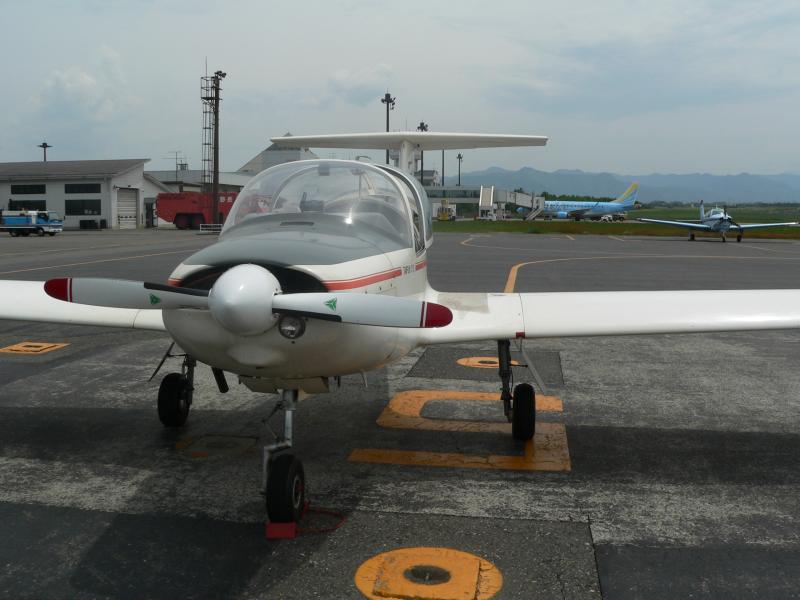 15年前の7月に佐渡からの帰路で不時着を迫られた窮地から命を救った言葉があった。「雨に遭ったらフラップ1段」飛行規程にもないS教官の長い飛行経験から生れた独自のアドバイスであった。13:40佐渡空港を離陸し海を渡ると陸地には夏特有の積雲が湧き上がり、この先雲が多い山岳地帯の飛行リスクは容易に想像できた。すぐさま最先端のGPSにGO HOMEを入力して、真夏の太陽がギラギラと眩しい1万フィートの雲上を一直線に巡航していた。離陸から1時間が経過した頃(GPSは上田市付近)には地表の標高に連れて雲の高度も増し1万4千フィートに達してしまった。周囲には雄大積雲の柱が何本も立ち上がり成層圏まで伸びている。簡単な計算に悩み、出た答えに愕然とした。『高度4200m!!』機体は快調だが同乗者には高山病の兆しが見え始め、自身も的確な判断ができる内に降下したい。しばらくして運良く雲に穴が開いていて地上の町並みが見えた。タイトな穴だがスパイラルダイブで何とかぎりぎり降下できそう。選択肢はない、、躊躇せずにパワーを絞り機体を大きくバンクさせた。この穴が地獄に落ちる入り口だった・・・continue画像は、松本空港N-5に駐機するTAIFUN 17 E JA2369茅ヶ岳のオアシス2016-04-03