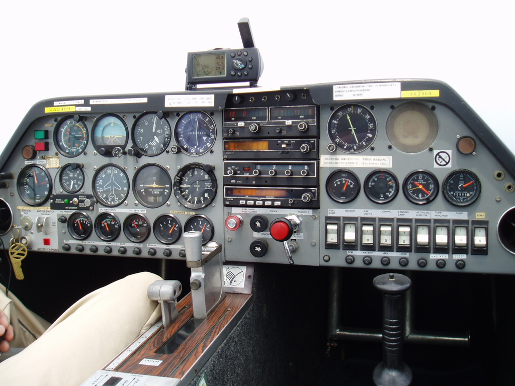 航空機にとってエンジンは心臓であり、搭乗者にとっても命である。だから機長は、その鼓動を自分の体のように感じて居なければならない。それは、音であり、振動であり、時には匂いであったりもする。同時に計器がエンジンの状態をリアルタイムに伝えてくるので、これらのスキャニング(監視)も怠ってはならない。前回(4日)僅かな異常を感じ飛行を断念して点検中だったエンジンの整備が 終り、今日はテストフライト。上昇~降下を繰り返し、各計器のデータを記録した。写真は、甲府市上空1200mを飛行中のコックピット、中央の無線機器以外はすべてアナログ計器で、視認性を重視した配列になっている。問題の有った上昇中のオーバーヒートの対策は80%の出来、残りの20%はパイロットのセンス、すなわち「人馬一体の感性」に委ねられる。双葉09:50~双葉10:50 1+00