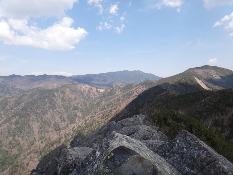 今日はクラブで鍵掛峠~王岳~五湖山~女坂峠の縦走を予定していたが、昼過ぎから発雷の予報が出て延期とした。山で遭遇する雷の怖さは長い間に何度も経験しているが、場所や標高などの規則性はなく、前兆と同時に落雷など、突然といった印象が強い。だから夏季の登山では雷注意報に神経を過敏にしている。まして同行者があれば自己責任では済まされない。午前中は大丈夫なので速攻で乾徳山(2031m)に登ることにして、ラジオ体操は休み6時半に自宅を出発、7時15分には徳和の登山口をスタートする。山好きが山梨に暮らす地の利だ。コースは10代から100回以上歩いているから不安はない。誰にも会わずに快調なペースで休まず登る。やがて道満尾根と合流すると、牧場から登ってきた先行グループが現れ、クサリ場の渋滞にペースダウンを強いられる。それでもコースタイムの65%で登ったから上出来だ。期待した山頂からの眺望は60点。地表気温の上昇で甲府盆地は霞み、富士山とアルプス南部は雲の中に隠れている。国師ヶ岳方面(写真)の空には積乱雲の卵になる千切れた積雲が見られる。予報的中!夕方からは局地的な豪雨で中央線のダイヤは乱れ、乾徳山がある狭東地方では雹が降り、特産の高級ぶどうに被害が出てしまった。徳 和07:15~乾徳山09:45 2+30