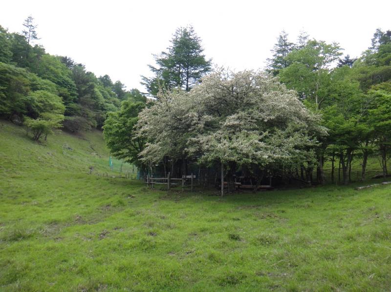 コロナに奪われた日常。登山もその例外ではなく自粛要請の対象とされて来た。それが6月1日から段階的に規制が緩和されて県内在住者の県内登山が許された。待ちに待ったこの日を迎え肝心の天気だが、昨日は夜半に掛けて関東地方の南部を中心に猛烈な雷雨が襲った。幸いこの雨は明け方には止み、県内中西部では日中には曇間から青空が覗く予報になった。平年の梅雨入りが甲信地方では6月8日なので今日は貴重なチャンスになる。本来なら今月28日にはキタダケソウを見に北岳に登る計画だった。それがコロナでバスの開通が1ヶ月延期になり断念。ならばと秋にテン泊で南アルプス縦走を目標にした。憎きコロナに負けない信念と魂を鍛えるため10kg位は楽々と背負って歩ける体力を持ちたい。だから今日はトレーニングを兼ねて毎年恒例の丸川荘へ野菜を届けることにした。丸川分岐の車道ゲートは閉鎖のまま、駐車場の先行者も2台だけと意外な静けさ。ミソギ沢の台風被害跡を過ぎて尾根に取り付くと直ぐに厳しい急登が始まる。雨上がりの新緑は眩しく吹く風は涼しい。山に登れる喜びを全身に感じながら登る。小屋では変らぬ優しい笑顔の只木さんと、今年は3日間で満開になったコナシの花(写真)が迎えてくれた。南に開けた草原状の地形の丸川峠に建つランプの山小屋「丸川荘」。シンボルツリー「コナシの大木」は小屋を包み込む程の存在感がある。丸川分岐08:00~大菩薩嶺11:00 3+00