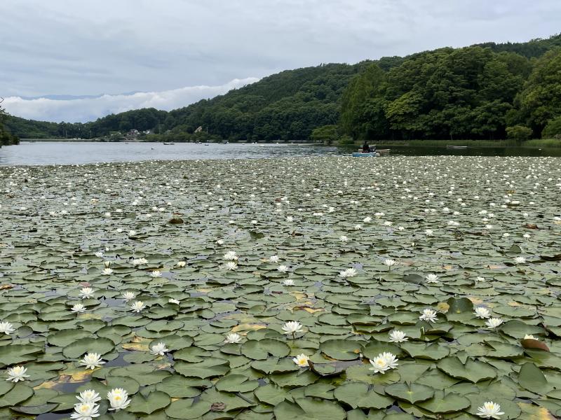 コロナ5類も2年目に入り仕事は徐々に回復傾向にある。休日の今日も午後に仕事が入り、登山教室で三ツ峠に登る予定はキャンセルした。スイレンの開花情報も気になり早朝の緑ヶ丘をスタートして千代田湖を目指す。先行するトレランに着かず離れず湯村山13分、ペースは遅い。追い越して法泉寺山26分、ヘッドバンドを着ける。コル30分、汗が流れる。第2東屋41分、給水少し。この後の八王子山への登りで2回も立ち止まり47分で八王子山を通過する。体調は本調子に程遠いが、雨上がりの先週と違い乾いた路面に助けられ、前回タイムを4分更新して白山にゴールした。少し休んで湖畔に下る。スイレンの群生地(写真)は湖の北岸にあり大体5部咲きといったところだ。仕事で時間に追われる毎日の延長でトレーニングでも常にタイムを意識している。それが純白の花を眺めていると不思議とのんびりとした気持ちになれた。のんびりも僅か、雨が落ちてきて白山に登り返し帰路に向かった。SM緑 ヶ 丘07:30~白 山08:23 0+53(18℃ 53.17.27)
