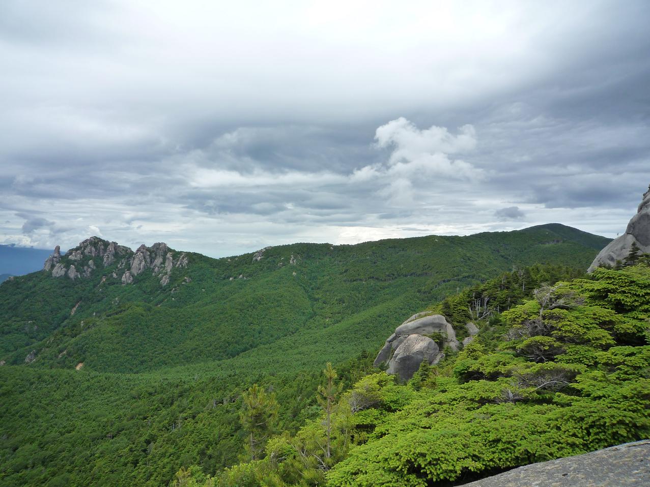 石楠花トンネルの登りを頑張ると、大日岩の北面中段(大日小屋への分岐あり)に飛び出し一気に眺望が開けた。